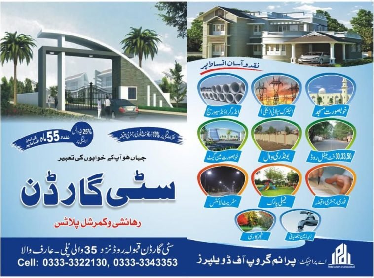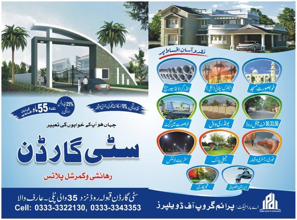 • Address City Garden, City Garden, Qaboola Road, near 35 Puli, Green Town, Ārifwāla, Pakistan