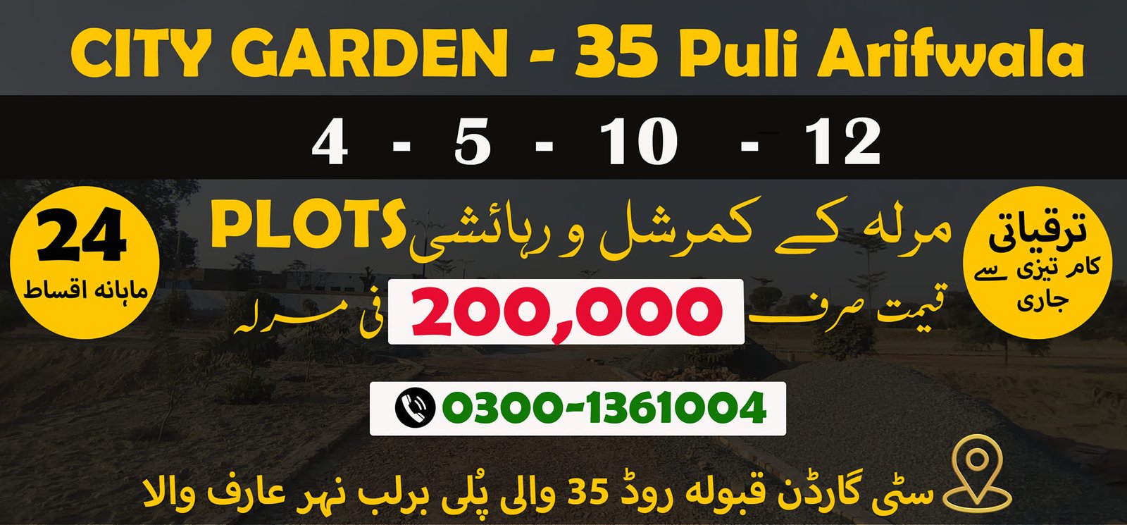 City Garden is strategically situated on Qaboola Road, near 35 Puli in Green Town, Arifwala. This prime location offers: